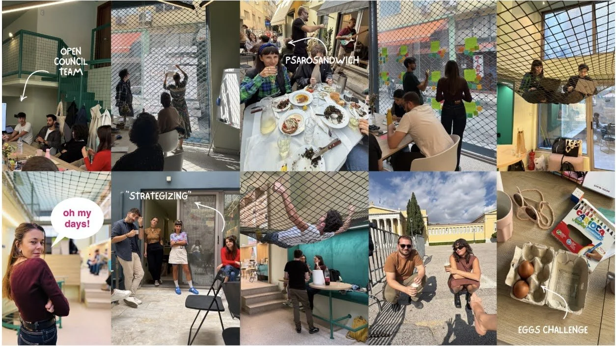 Μια ομάδα από venture builders δουλεύει μαζί σου κάθε μέρα — σε στρατηγική, branding, impact, πειραματισμό και εκτέλεση.